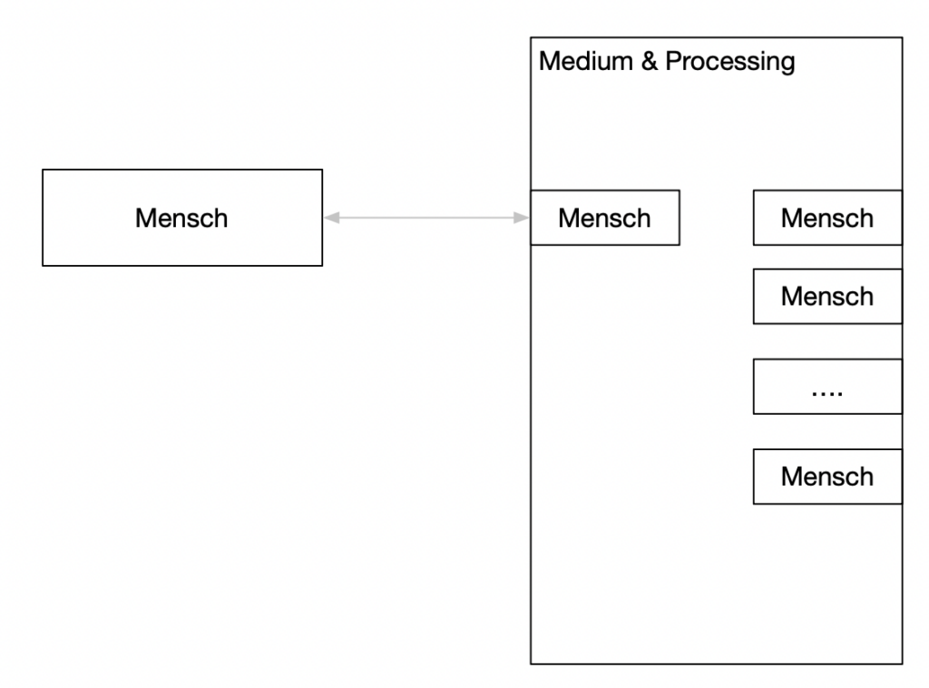 Analoge Medien waren geknüpft meist an menschliche Operatoren. Das heisst konkret, die Post, das Telefon, das Theater und sogar der Film noch waren angewiesen auf Menschen, die das Ganze „betrieben“ oder „handelten“.