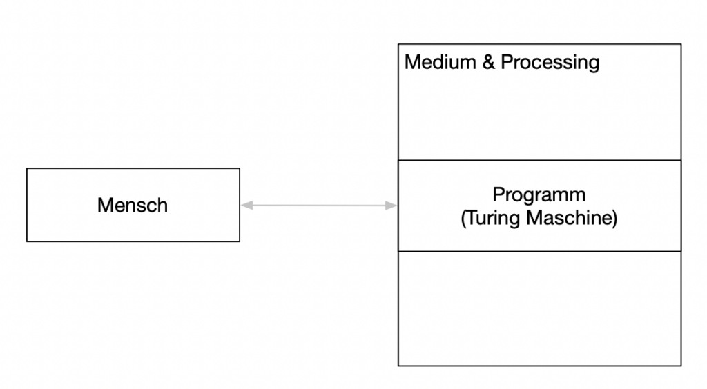 Auch wird mit Schaltungen/Programmierungen menschliches „Denken“ oder zumindest menschliches „Handeln“ / „Schematas“ entkoppelt ‚ausführbar‘. Anders als die klassischen analogen Maschinen sind auch Bedingungen (als Ifs) möglich.