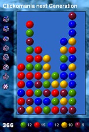 Etwas später entstand “Clickomania NextGenerations”. Next generations hatte diverse neue Features wie verschiedene Spielvarianten, einen Gamedesigner, einen Webhighscore. Man konnte auch ein eigenes Bild oder einen Ordner angeben und es nahm die Bilder daraus für den Hintergrund und passte die Levelgrösse dynamisch an. “Es entstand Clickomania Next Generation. Dort gab es einen Gamedesigner[-Mode]. Dort konnte man das Spiel selbst konfektionieren: Wieviele Farben, wie sahen die Spielsteine aus, eigenes Hintergrundbild.” (Schüssler, Teil I, 0:48:15)
